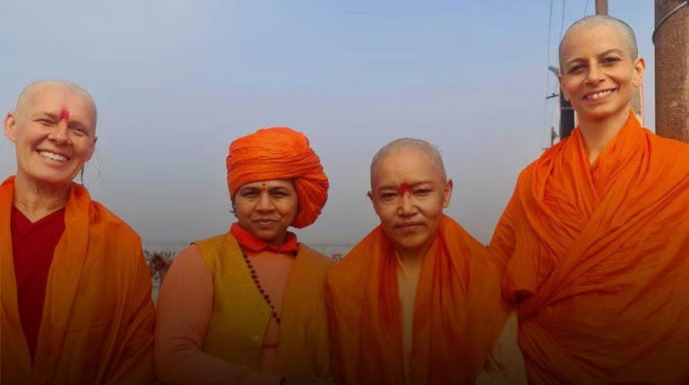 महाकुंभ में विदेशी महिलाओं की बढ़ती भागीदारी।