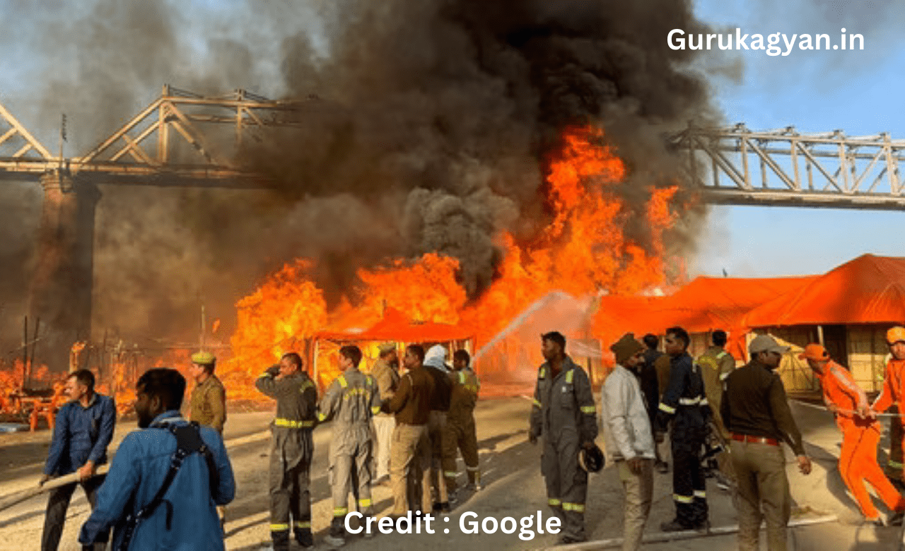महाकुंभ के सेक्टर 19 में निर्मल बाबा के शिविर में आग लगी।